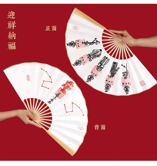 定制风水秀砂-道长手绘开光五路财神扇-调和房屋内外冲突能量